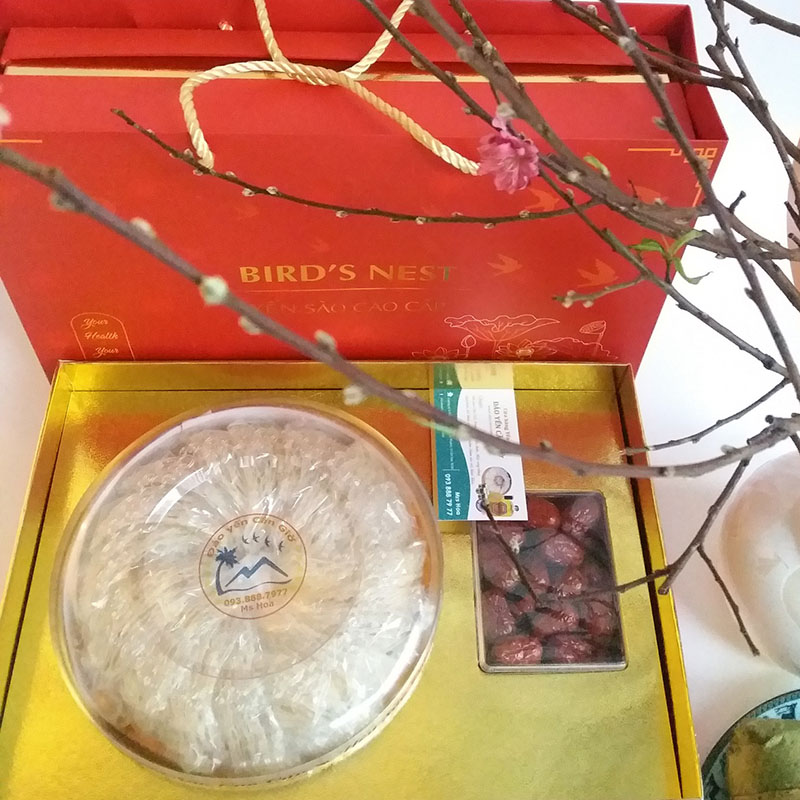 2. HỘP QUÀ TỔ YẾN RÚT LÔNG: Hộp quà yến sào giấy cứng, in đẹp, sang trọng, đựng vừa vặn 100gr yến sào + hộp táo đỏ + túi xách. Tổ yến rút lông không bụng là sản phẩm cao cấp nhất trong các loại tổ yến nên có giá thành cao hơn các loại yến khác. Là quà biếu tặng có giá trị, sang trọng, có ý nghĩa và có giá trị sử dụng rất cao, thể hiện sự quan tâm tinh tế của người tặng tới sức khỏe của người thân, đối tác.