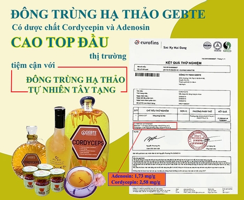 Chúng tôi, Đảo yến Cần Giờ là đại lý phân phối Đông Trùng Hạ Thảo GEBTE được nuôi cấy trong môi trường lạnh, vô trùng theo tiêu chuẩn Nhật Bản với hàm lượng dược chất được kiểm định như sau: